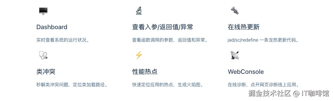 Arthas 是一款线上监控诊断产品,通过全局视角实时查看应用 load、内存、gc、线程的状态信息,并能在不修改应用代码的情况下,对业务问题进行诊断,包括查看方法调用的出入参、异常,监测方法执行耗时,类加载信息等,大大提升线上问题排查效率。