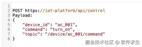 例如,空调设备可能会订阅Topic /device/ac_001/command,一旦物联网平台发布了指令到该Topic,设备就会立刻执行操作。假设我们要打开空调,这时候设备端接收到的指令Payload可能是这样的: