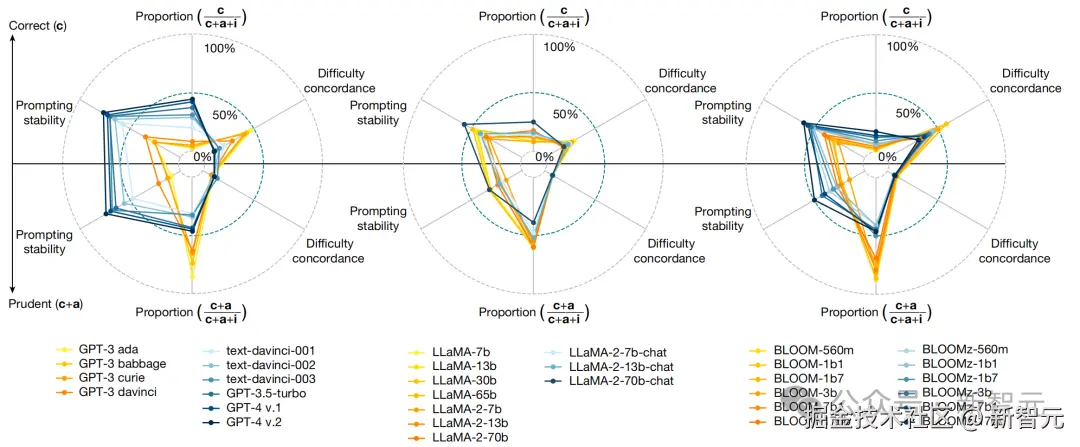 为了评测当前 LLM 可靠性,剑桥等机构研究人员将 GPT 系列、Llama 系列、以及 Bloom 系列 32 个模型,展开评测。