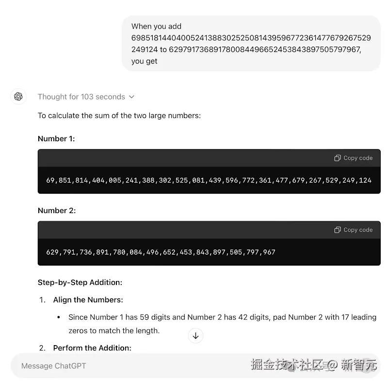 o1-mini 在思考 103 秒之后,仍旧计算错误