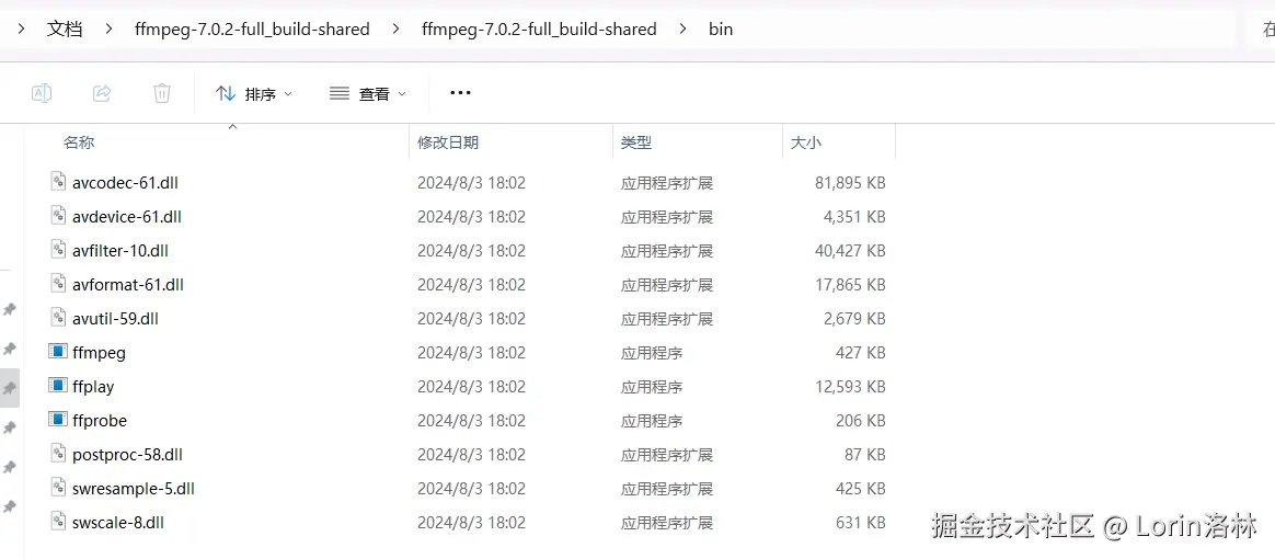 - 同一个版本带 shared 的还是不带 shared 功能完全相同,带 shared 的里面,多了 include、lib 目录。把 FFmpeg 依赖的模块包单独的放在的 lib 目录中。ffmpeg.exe,ffplay.exe,ffprobe.exe 作为可执行文件的入口,文件体积很小,他们在运行的时候,如果需要,会到 lib 中调用相应的功能。