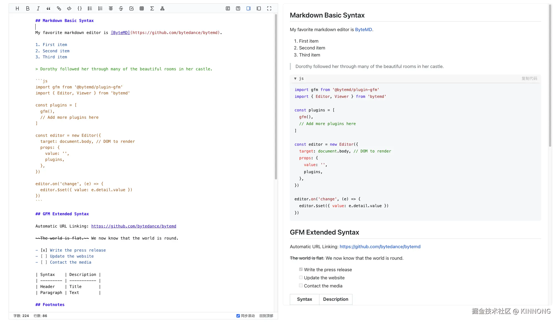 demo 示例:bytemd.js.org/playground/