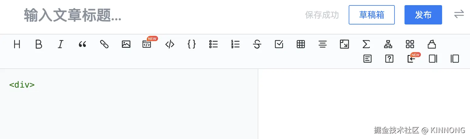 这样,就能得到一个基本的编辑器了,大家可以在光标中输入看看有没有实现所见即所得呢?但是右上角多了一个 GitHub 的图标,咱们把它隐藏起来,主打的就是一个简洁~