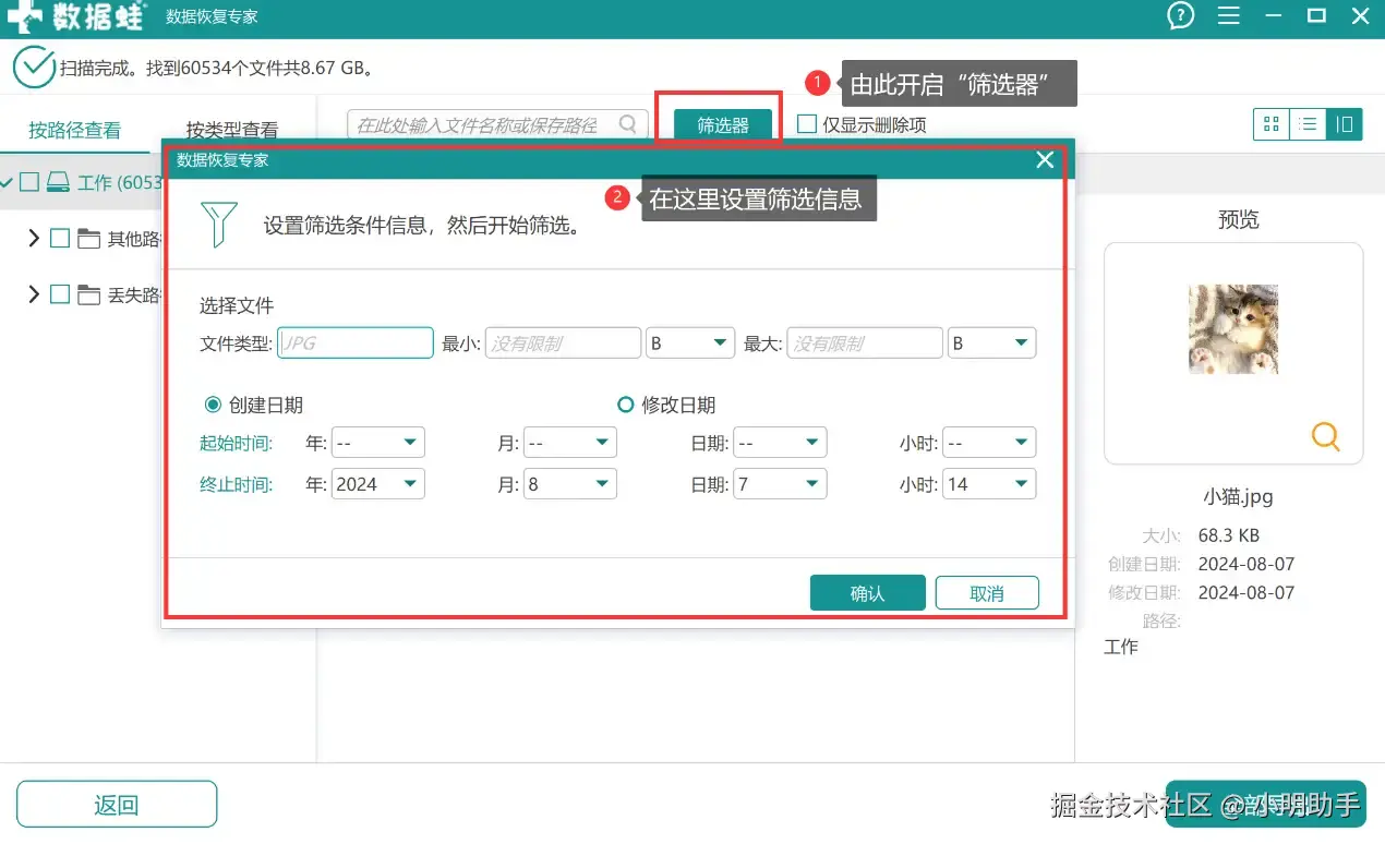 第2步: 扫描结束后,可以通过“筛选器”查找需要恢复的文件。