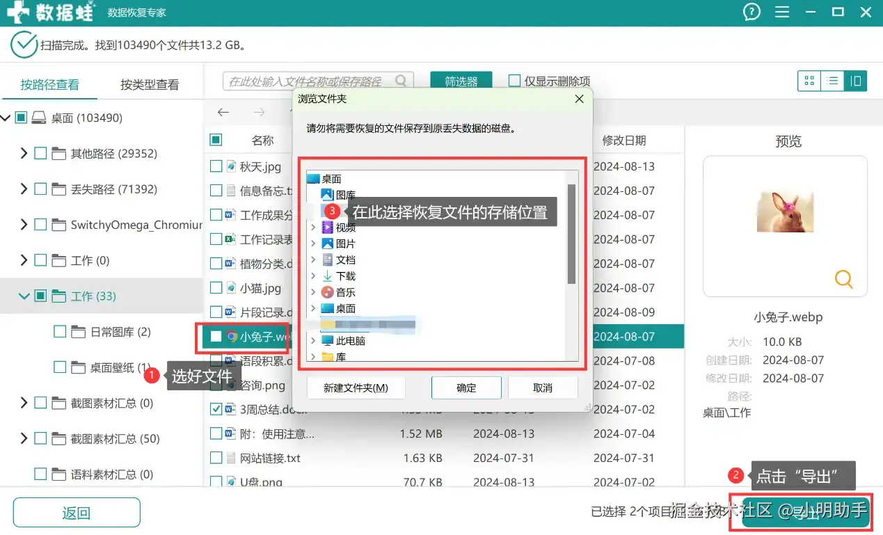 第2步: 找到文件后点击选中,再点“导出”。最后在弹窗上选择存储的位置。