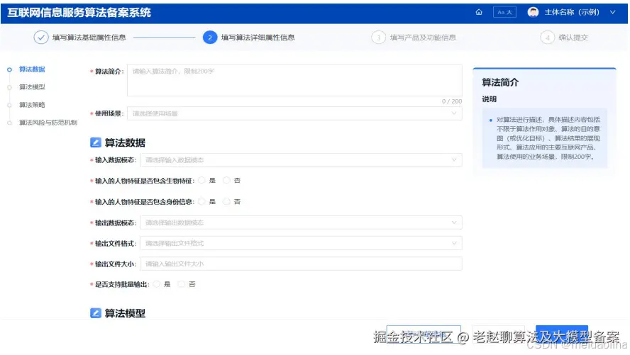 - 算法信息填报