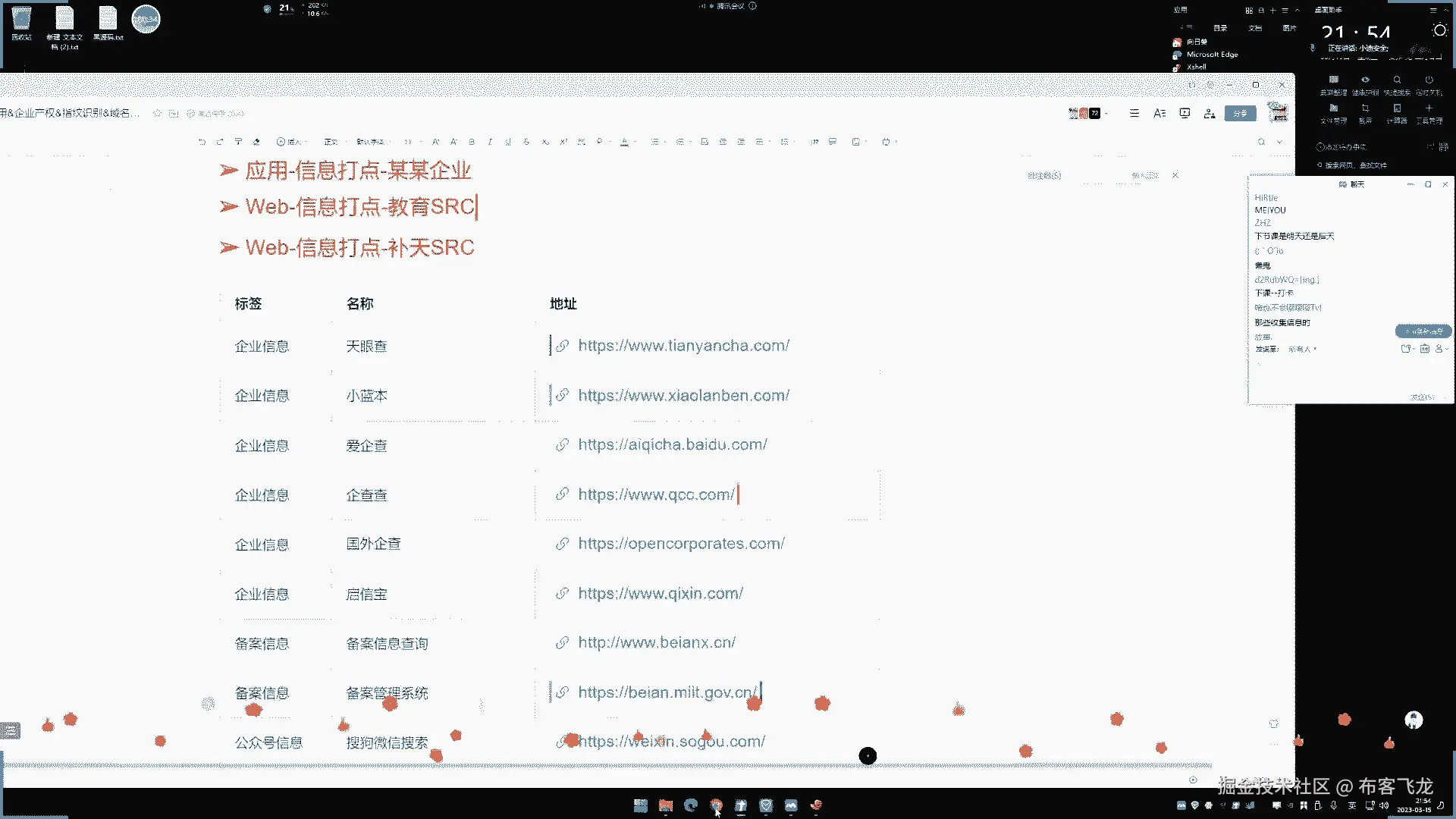 目录扫描名的信息提取啊等等,二维码提取啊,会涉及到一些专业的技术啊,今天主要说的是这个基本的认知啊,就web的一个最前世开始的什么域名啊,架构的简单分析,而且分析的也是入门的呃,稍微深入一点的。