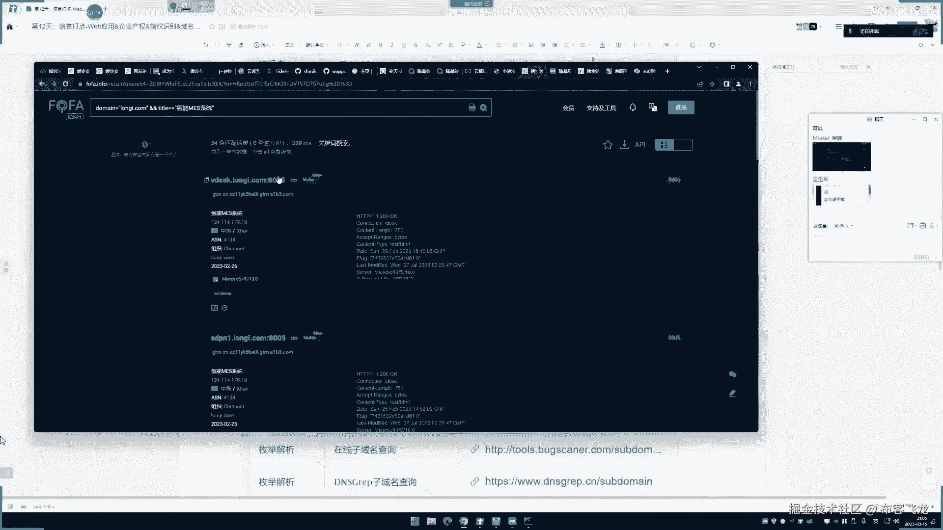 收集到这种东西之后,你面对的其实就是两个目标,就说你的目标是小于八点com,但是你收集到它有多个这个域名了,然后呢多个域名上面的程序不一样,那么也就是说,任何这个域名上面的某个程序出现安全漏洞。