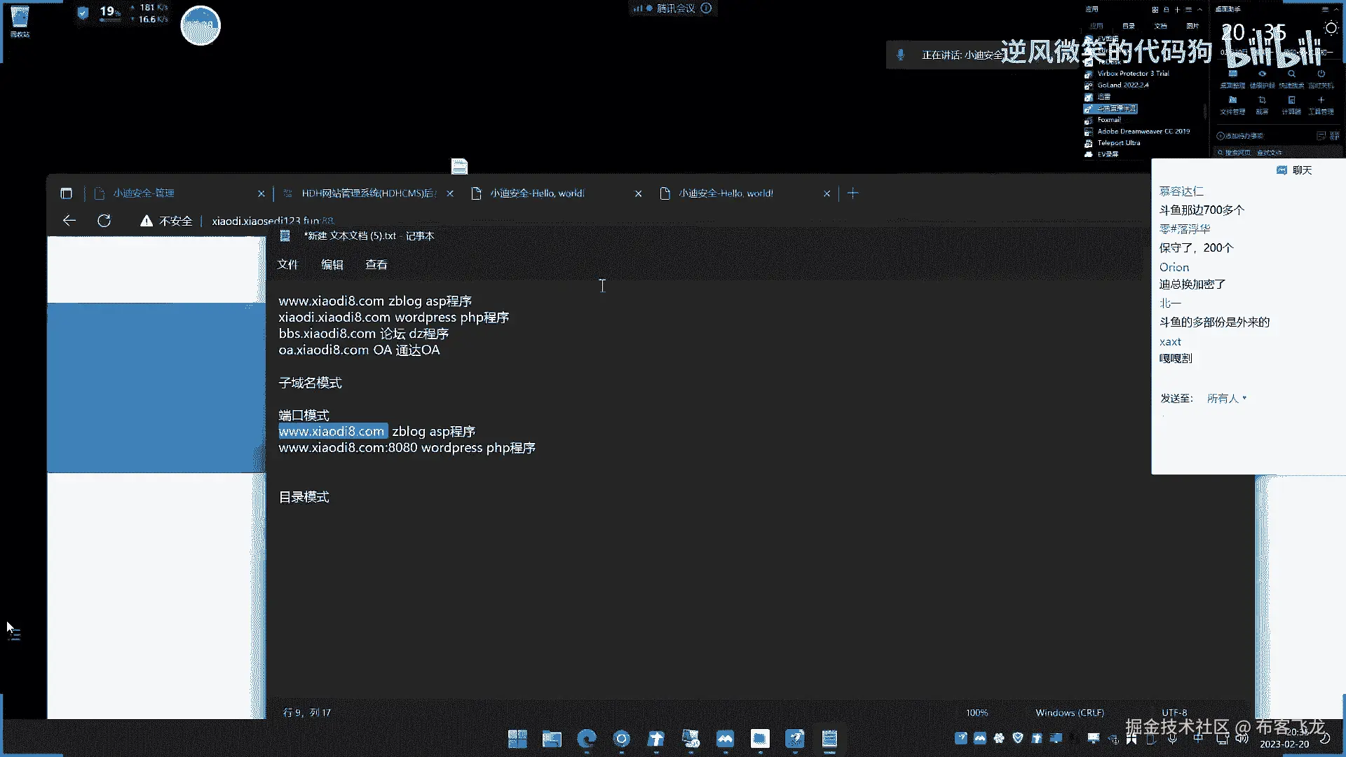 内容上面呢有一些小感悟,就比如说像这一期啊,我们这个讲课的思路呢就和上期不一样,我们讲个思路是讲什么呢,我就是先从这个往啊啊啊这个这个打井上面,就是说我们尝试着去打点像这种网站啊,或者说类似小程序啊。