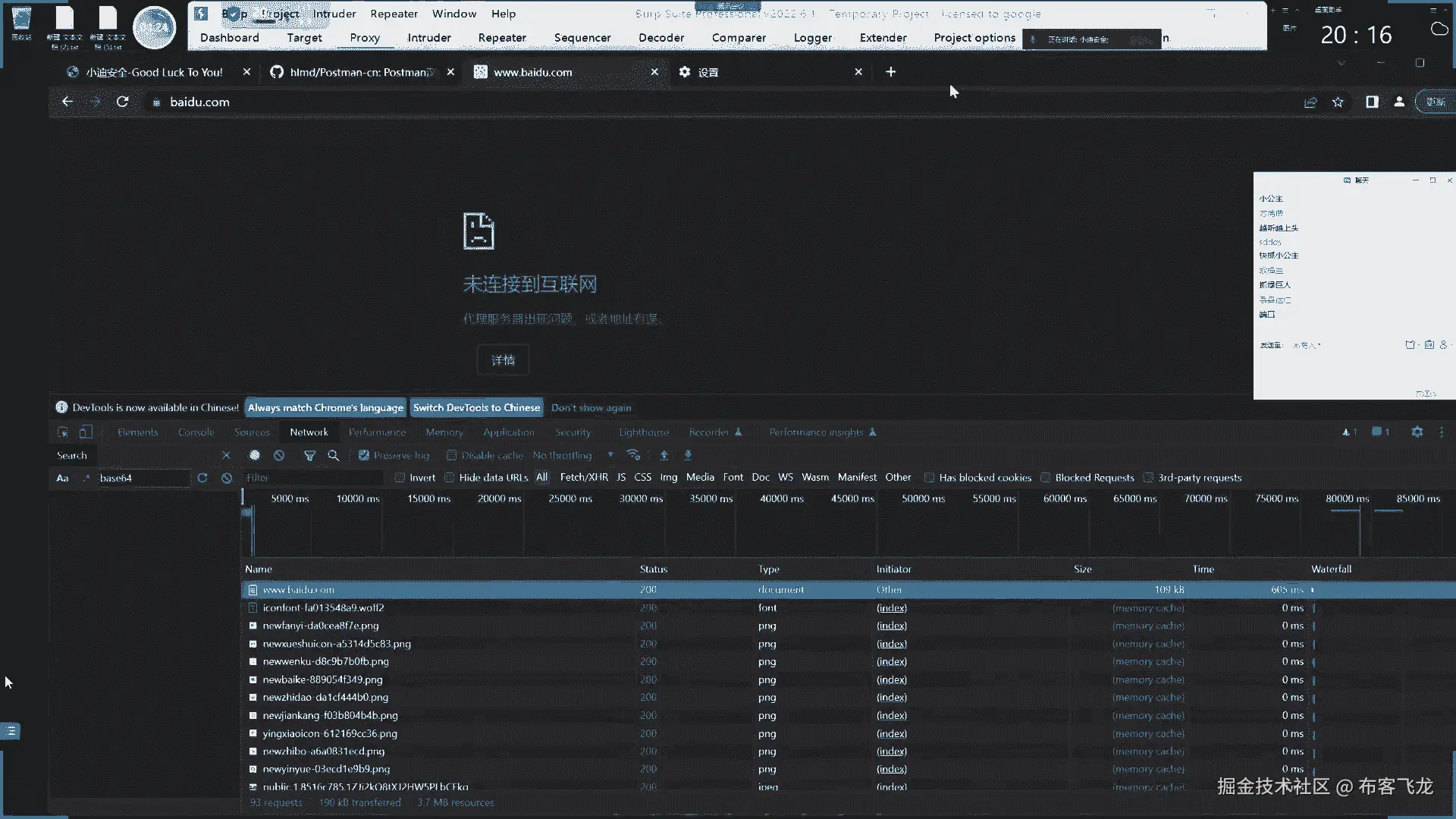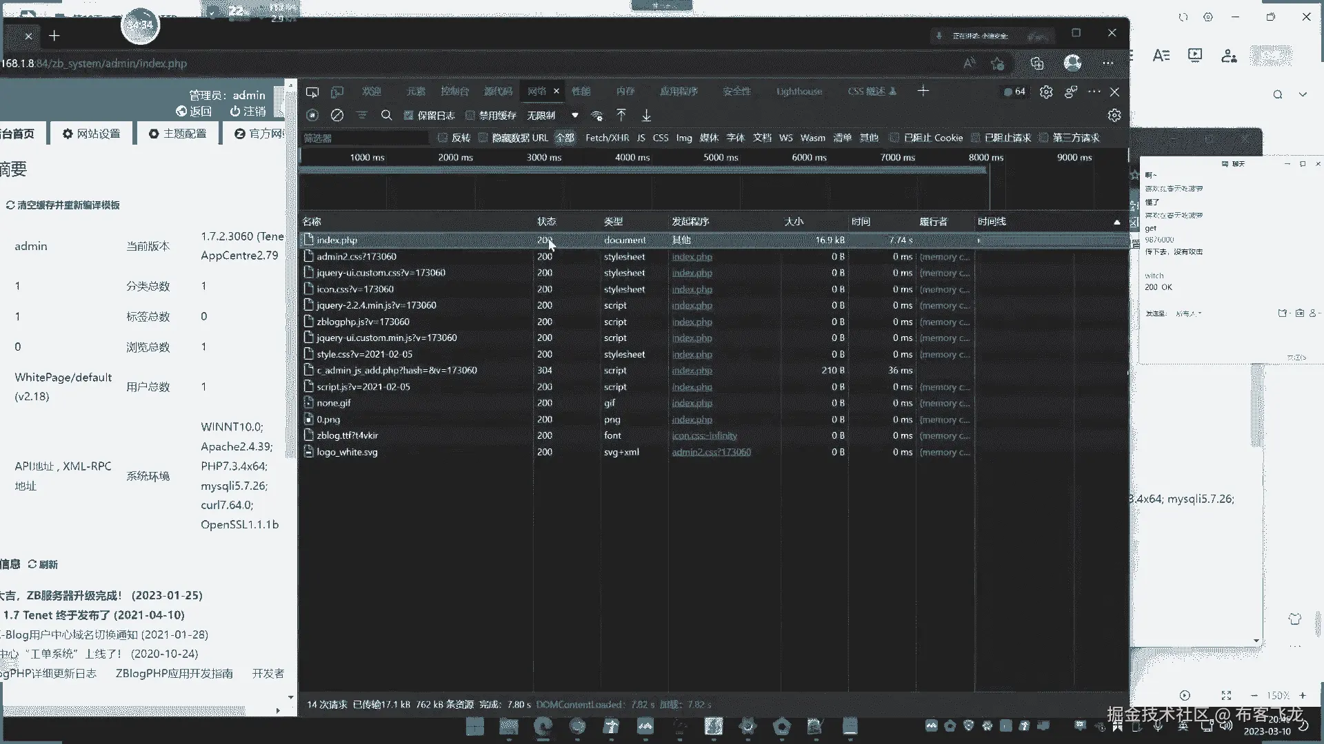 现在我打开网站试一下,然后放下半年刊物,然后呢把这个插件给他露出来了,把它把它置顶到这里来看一下,这里这是我那个检测信息,但是你会翻到他这里,检测信息都是一些其他信息,并不是P的呀,阿帕奇的呀是吧。