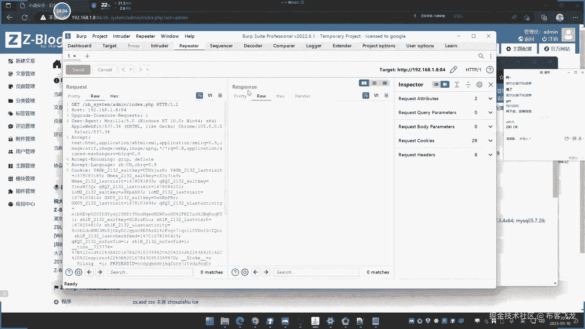 这个信息呢能看到3MS信息为z blog,我就是用ZBLOG搭建的,ZBLOG是一套程序是吧,给点击看一下,这是关于z blog的一个信息,然后在这里查一下z blog有没有包括一些漏洞,哎。