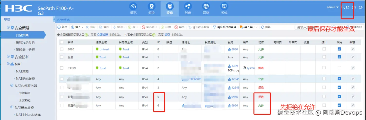 遵循“先拦截再放行策略”,类似iptables规则先限制所有用户访问,在允许放行指定的白名单,最终创建规则如下