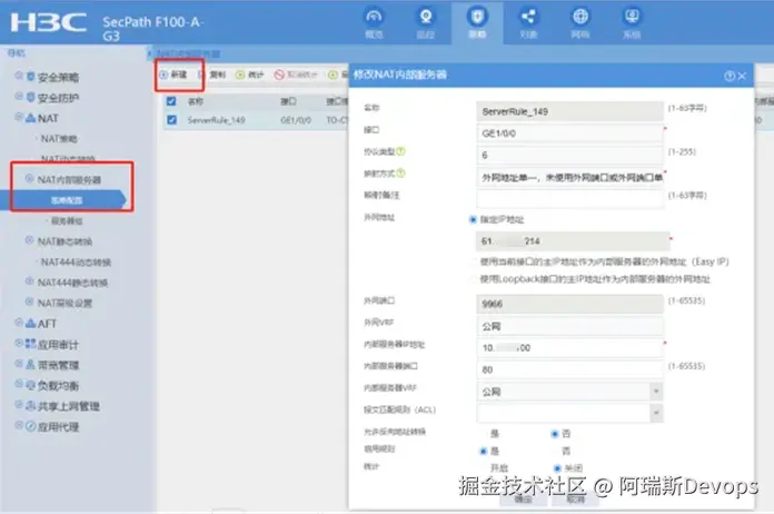 以上实现内网环境下的Windows 文档服务器的访问,对于钉钉访问需要暴露公网IP和端口,这里通过H3C映射公网IP:port作为访问,同时设置白名单安全策略只允许固定IP访问。