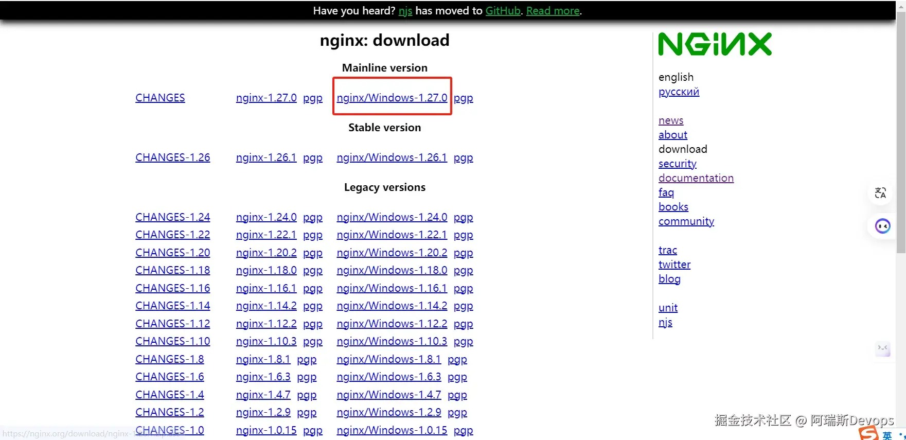 官方下载地址: nginx.org/download/ng…