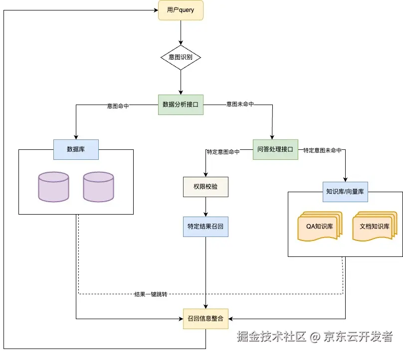 为提升业务的使用体验,确保统一平台统一问答入口出口,后台将知识问答与数据分析能力进行了有机融合。
