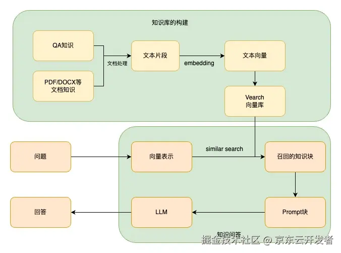 两种知识库建立之后,为了下游的(相似度)算法使用,均需要将待检索/待召回文本转为向量,存储在向量数据库中,此项目中选择的是京东的Vearch库。