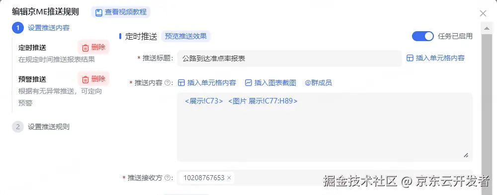 1.定时推送:业务关注的数据结果现可以通过京ME推送定时触达到群,收到的推送内容为全量信息;