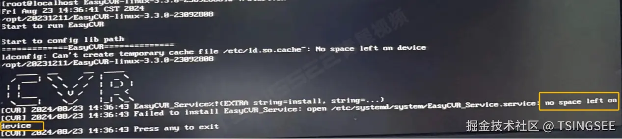 这种情况一般是磁盘无可用空间导致的,将用户现场磁盘清理空间后,此时视频汇聚/安防监控EasyCVR视频综合管理平台已经能正常运行了。