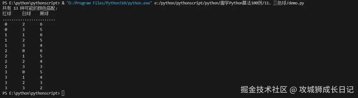FilePath: \pythonscript\python\趣学Python算法100例\11、三色球\demo.py