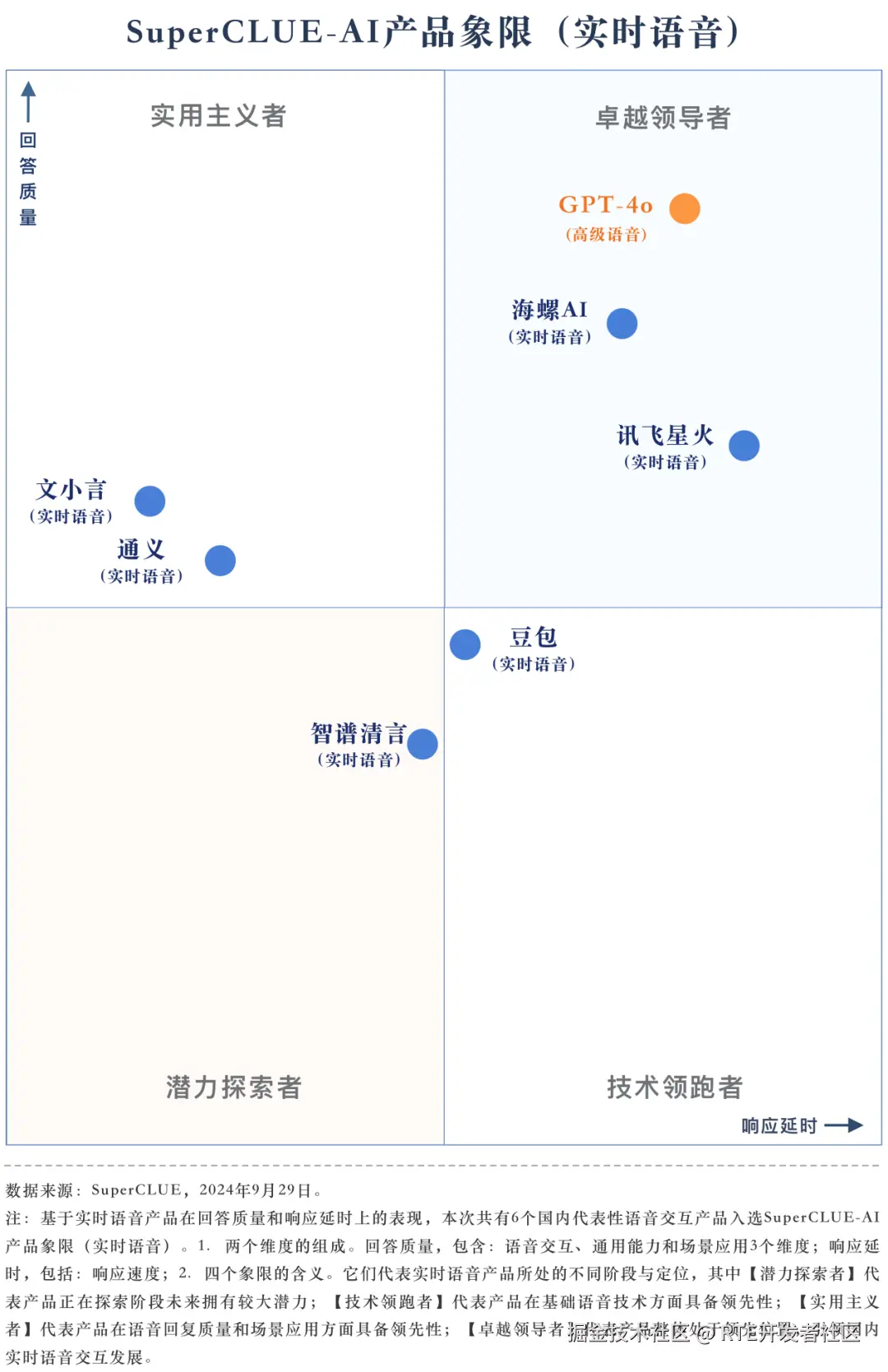 1、实时语音交互中文基准首期测评出炉,4 大维度 15 项能力 7 款应用,GPT-4o 高级语音领跑,国内产品延时、打断和场景应用表现出色