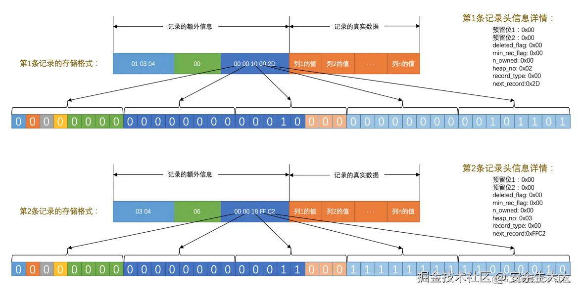 一条完整的记录其实可以被分为记录的额外信息和记录的真实数据两大部分。