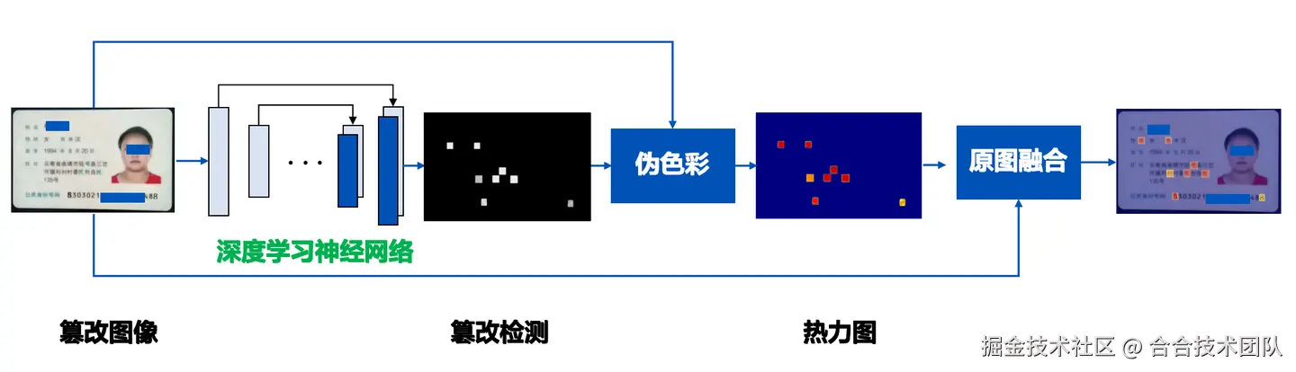 深度学习的方法为图像篡改检测提供了新的技术支持。采用神经网络模型,TextIn的检测技术能够捕捉图像在篡改过程中留下的细微痕迹,基于海量数据学习图像被篡改后统计特征的变化,智能判断图片是否被篡改。检测覆盖了复制粘贴、拼接、擦除等多种篡改形式与混合篡改,还能够定位修改区域,以热力图形式展示图像区域篡改置信度。