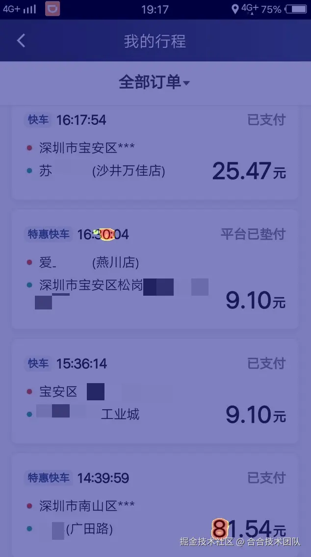 以网约车订单截图为例,交通费发生时间、金额都是财务审核的重点,TextIn图像篡改检测能够协助财务人员辨识截图中经过P图篡改的时间、金额数字,提升工作便利性与安全性。