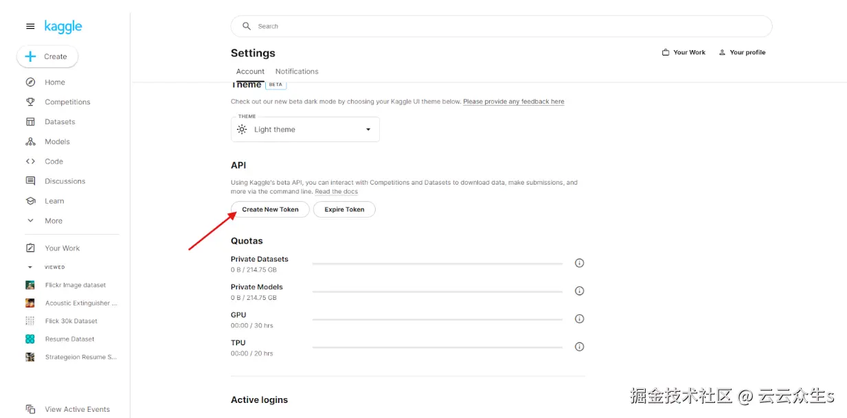 为 Kaggle 创建新令牌的设置