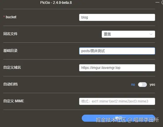 - 图床配置名:用于自己看