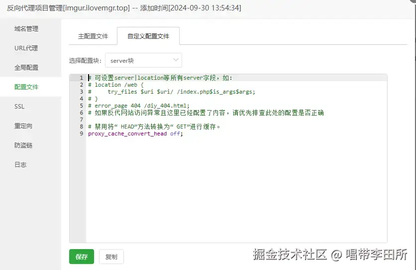 /posts为只读,所以它的次级文件夹都是可以被读的,如果填如/自定义,需要确保该文件夹能被读。 - 自定义域名:用于复制显示的域名,如果域名添加了SSL证书可用https,没有则