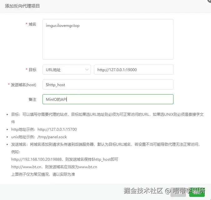 - port:端口号默认是80,参考宝塔面板中反向代理中域名管理的端口号即可。