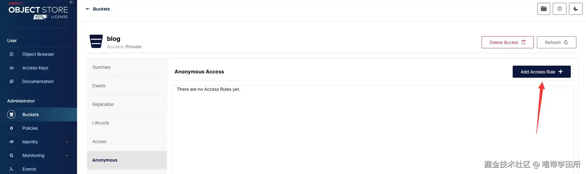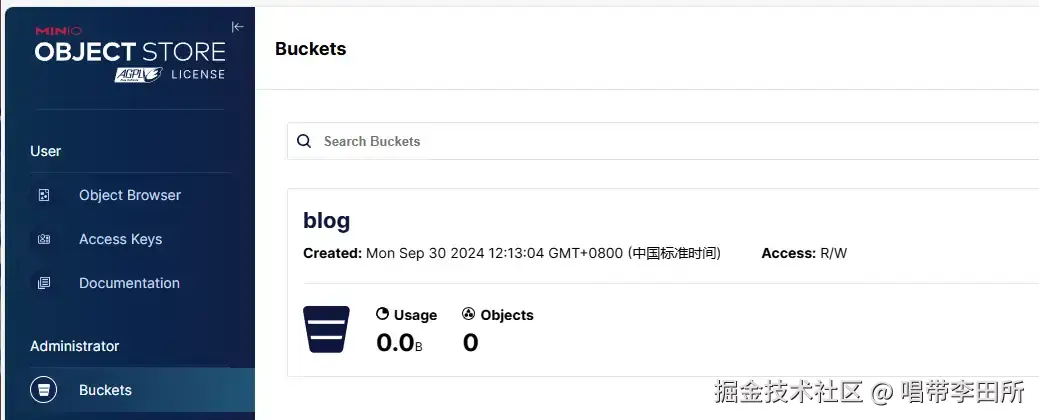 通过上述设置的域名访问MinIO的Web服务,账户密码为上述设置的管理员用户和密码,忘记了点击Docker中的MinIO服务上的详情可看。(复制的前面有缩进,记得删除)