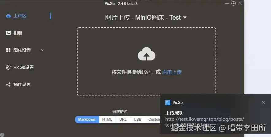 http://MinIO的API域名。 - 自动归档:yes表示开启,把上传的图片归档到当天日期目录下。我习惯按照帖子文件夹归档,所以不选择,还有一个好处是在相册的搜索中可按照帖子文件夹名字搜索。