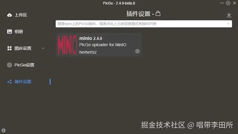 - 在搜索框输入minio并点击安装