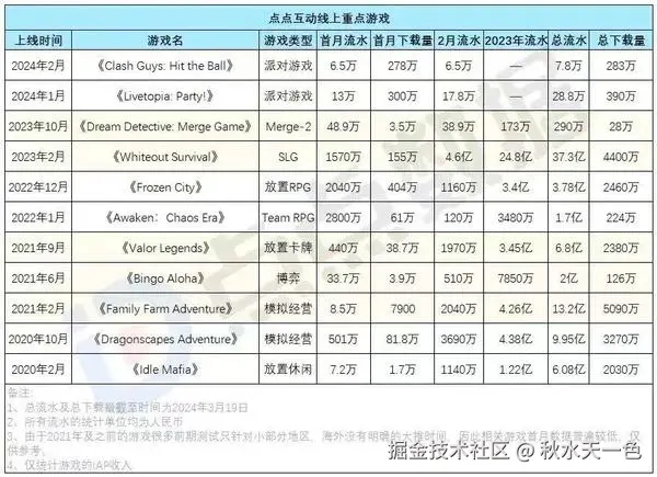 总的来说,不论是打造产品差异化,规避市场激烈竞争环境,还是推陈出新,持续研发迎合市场需求的产品,点点互动一步一步迈进中国手游发行商全球收入榜前三,将自己塑造为游戏出海的领航者,靠的不仅是创意的游戏设计,还有其对市场的敏锐洞察力和对用户需求的精准把握,为其他游戏出海厂商提供了宝贵的实践经验。