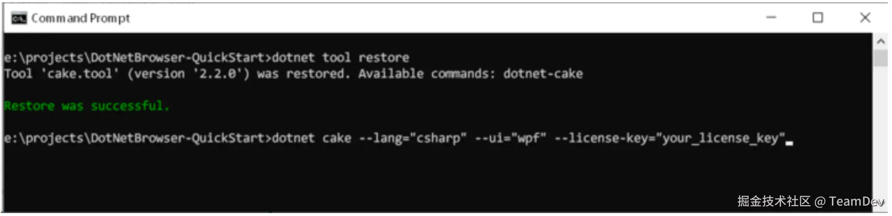 dotnet tool restore dotnet cake --lang="csharp" --ui="wpf" --license-key="your_license_key"