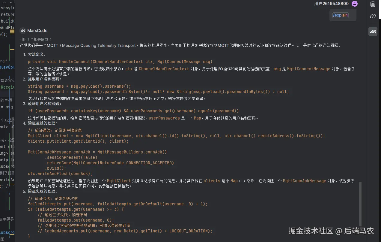 本文探讨了豆包编程助手在提高编程生产力方面的应用。使用豆包助手实现MQTT协议的服务端代码。它还提供了代码修复、补全、注释生成等功能。豆包助手在简单逻辑代码生成和代码注释方面表现出色,但在复杂场景下需要用户进一步修正。