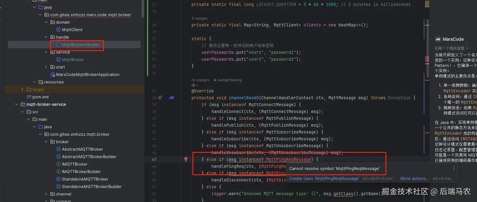 很显然MqttPingReqMessage、MqttDisconnectMessage这两个类是不存的。很有可能是豆包编程助手生造成来的。