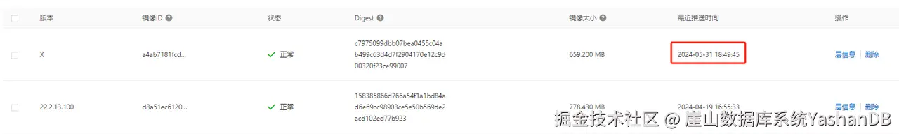 The push refers to repository [registry.cn-shenzhen.aliyuncs.com/jesseatyashan/yashandb]