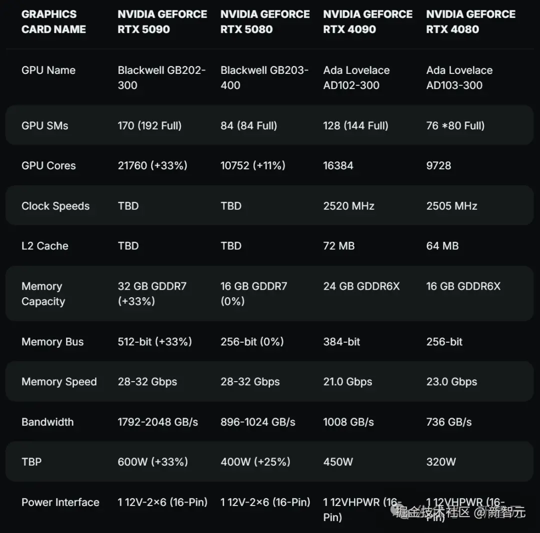 别看数值不小,但与 RTX 5090 相比,直接就是一个腰斩(不到 50%)。而此前 RTX 4090 和 RTX 4080 的差异为 40%。