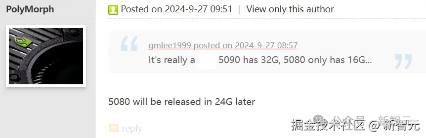 据知名硬件论坛 Chiphell 的著名成员 Polymorph 透露,英伟达可能会推出 24 GB 版本 RTX 5080。