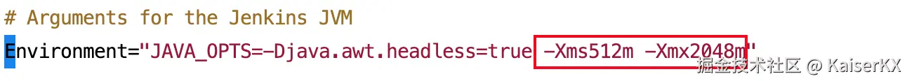 找到图中所示,红框部分就是需要加上的部分,限制最大内存占用2G。