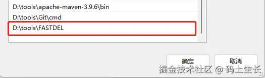 保存之后,打开系统环境变量配置页面,在Path路径加上D:\tools\FASTDEL,如下所示: