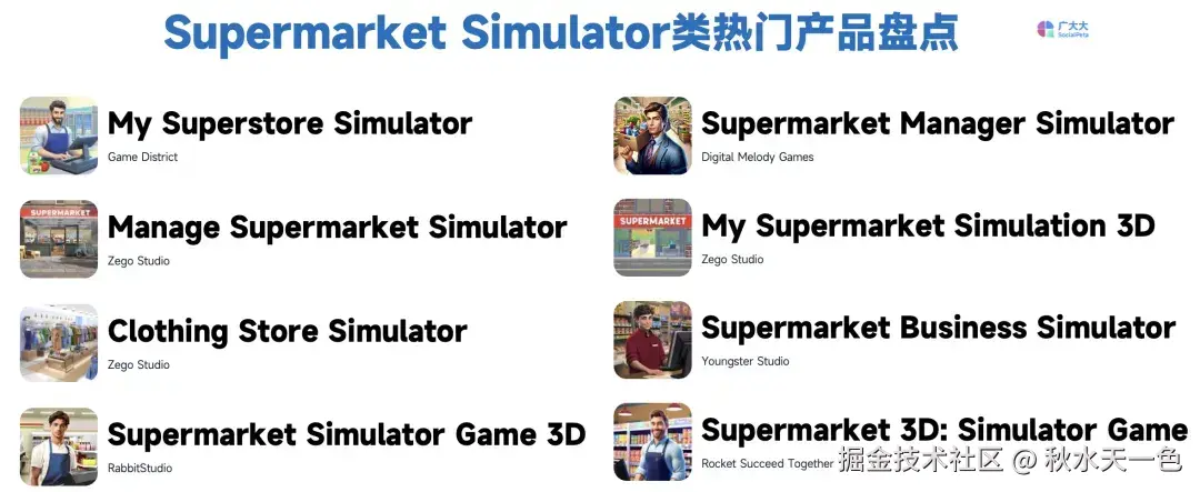 在玩法固定、美术大差不差的前提下,我们又该如何在不下百款的超市模拟器仿品中脱颖而出呢?游戏名+ICON+买量营销三管齐下也许是个不错的思路。