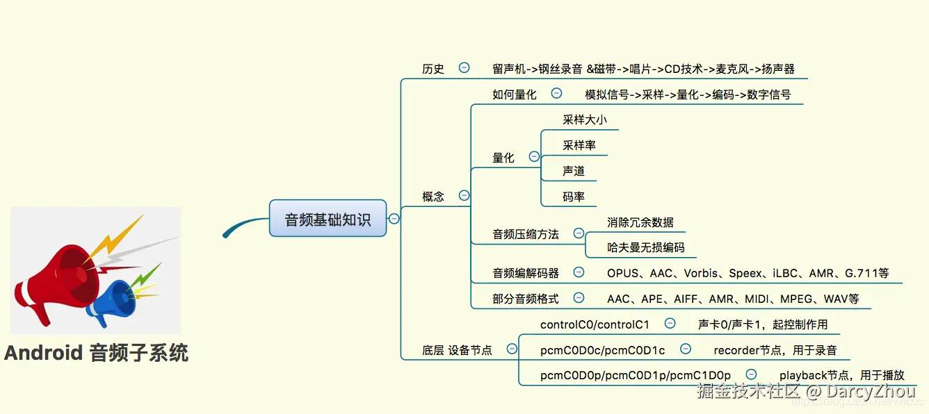 本章节主要关注以上思维导图即可。主要是对音频基础知识的一些了解。特殊说明:如果你对音频技术的历史和基础知识已经了解,可以直接略过本章节的前两部分。