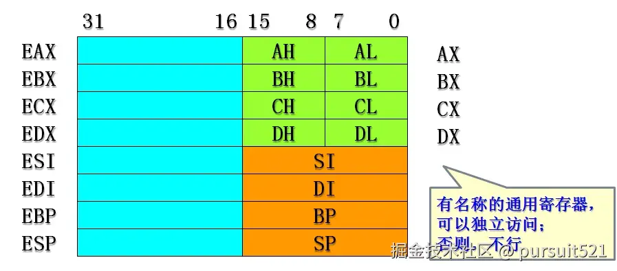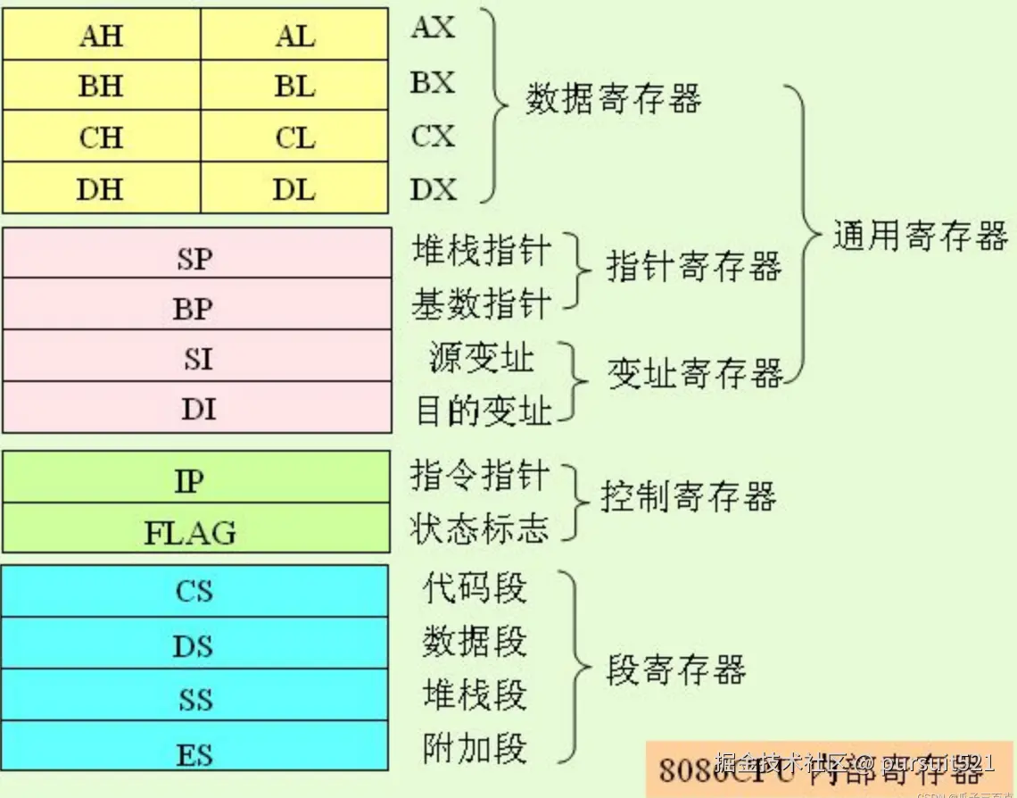 通用寄存器:数据寄存器,指针寄存器,变址寄存器