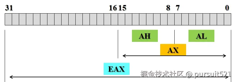 BX/EBX/RBX:基址寄存器,用于地址指定,常用来存放数据的偏移地址。