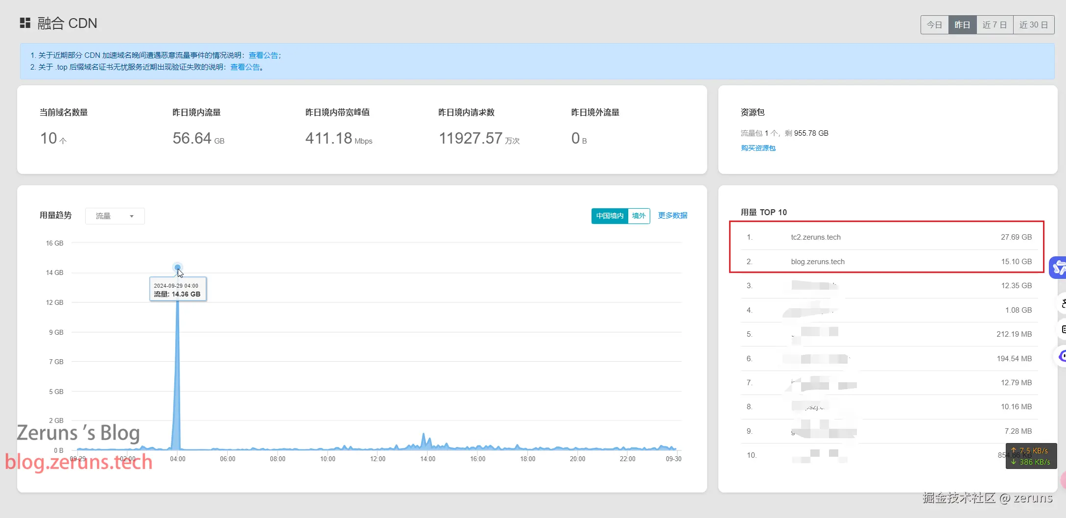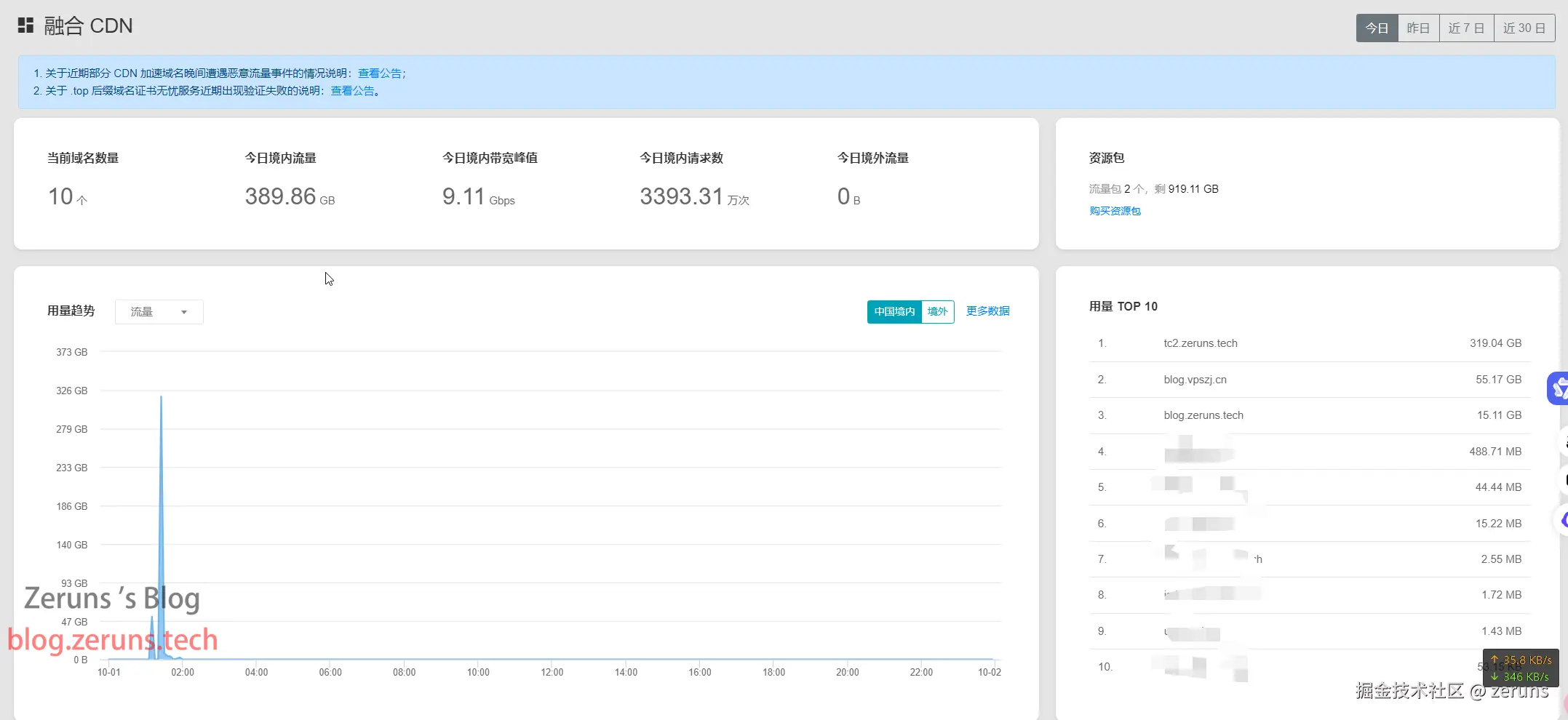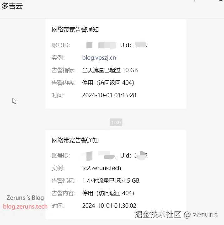 2024.10.1凌晨1点,攻击我另一个网站blog.vpszj.cn和图床的另一个域名tc2.zeruns.tech,刷了380GB左右流量(损失40元)