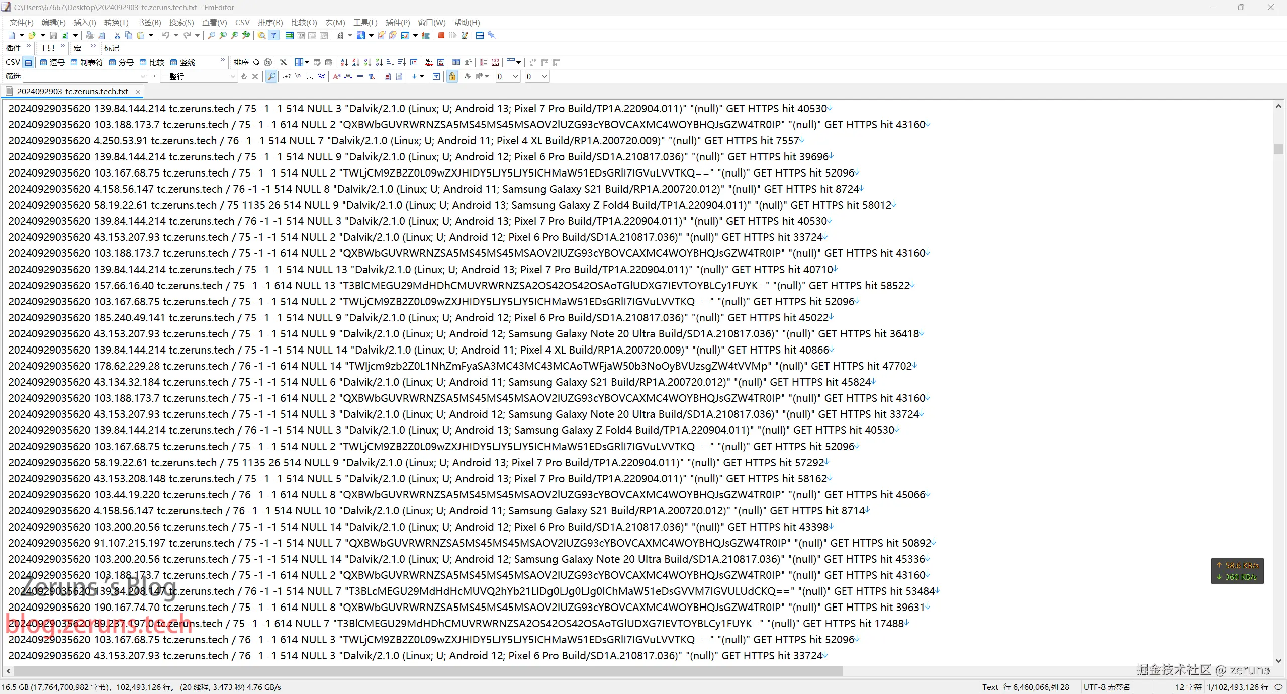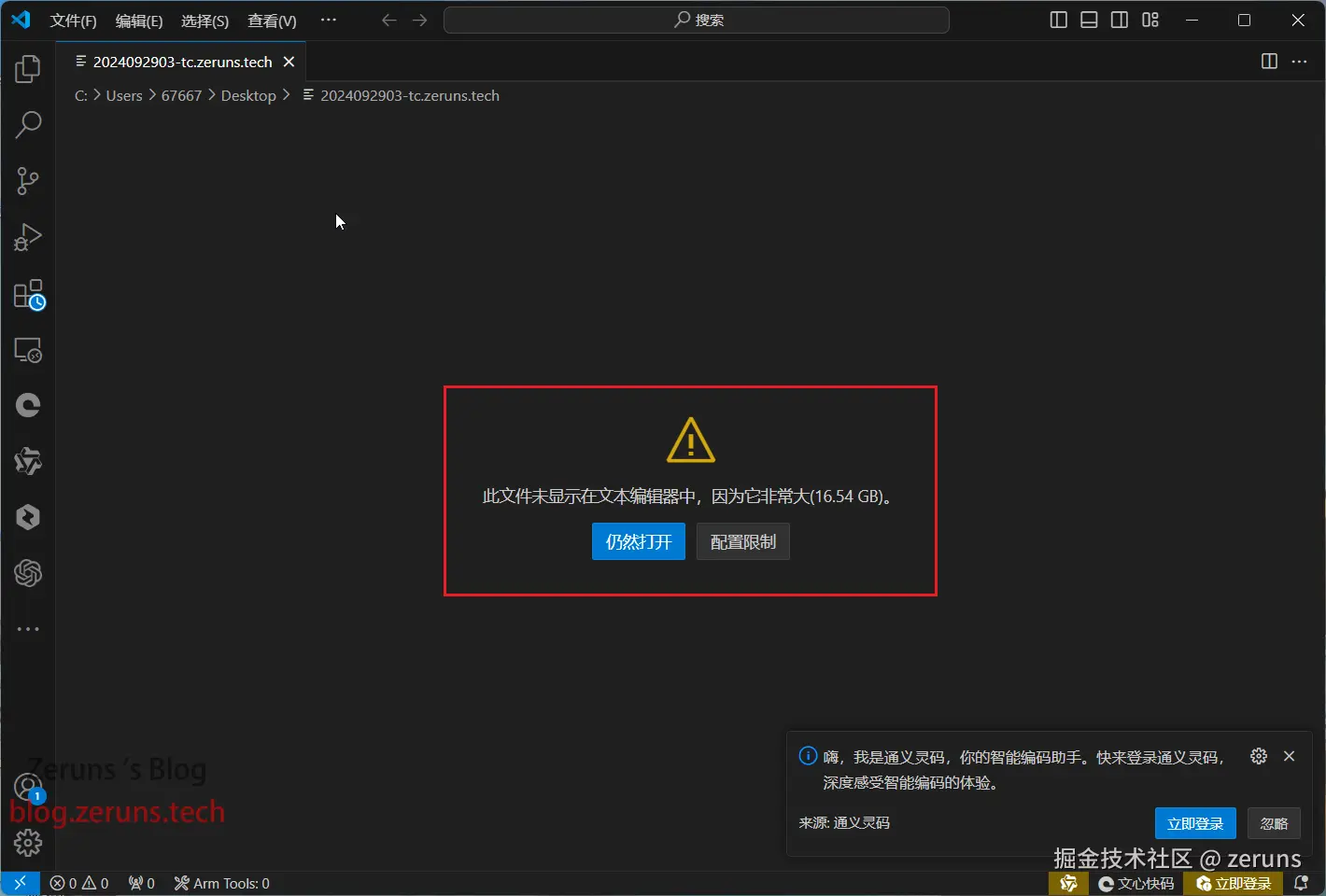 解压出来的日志16.54GB,用VScode打不开