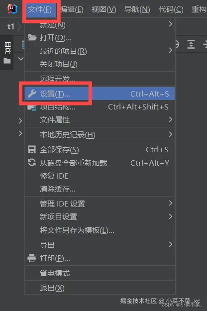 点击上方的 文件 -> 设置